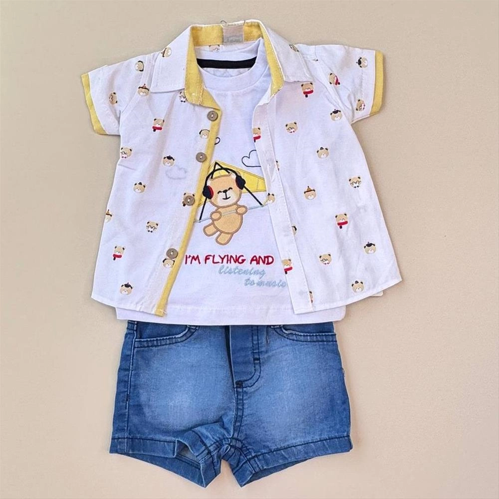 سه تیکه پسرانه با شلوارک و تیشرت ترک 6 تا 18 ماه کد 2011
